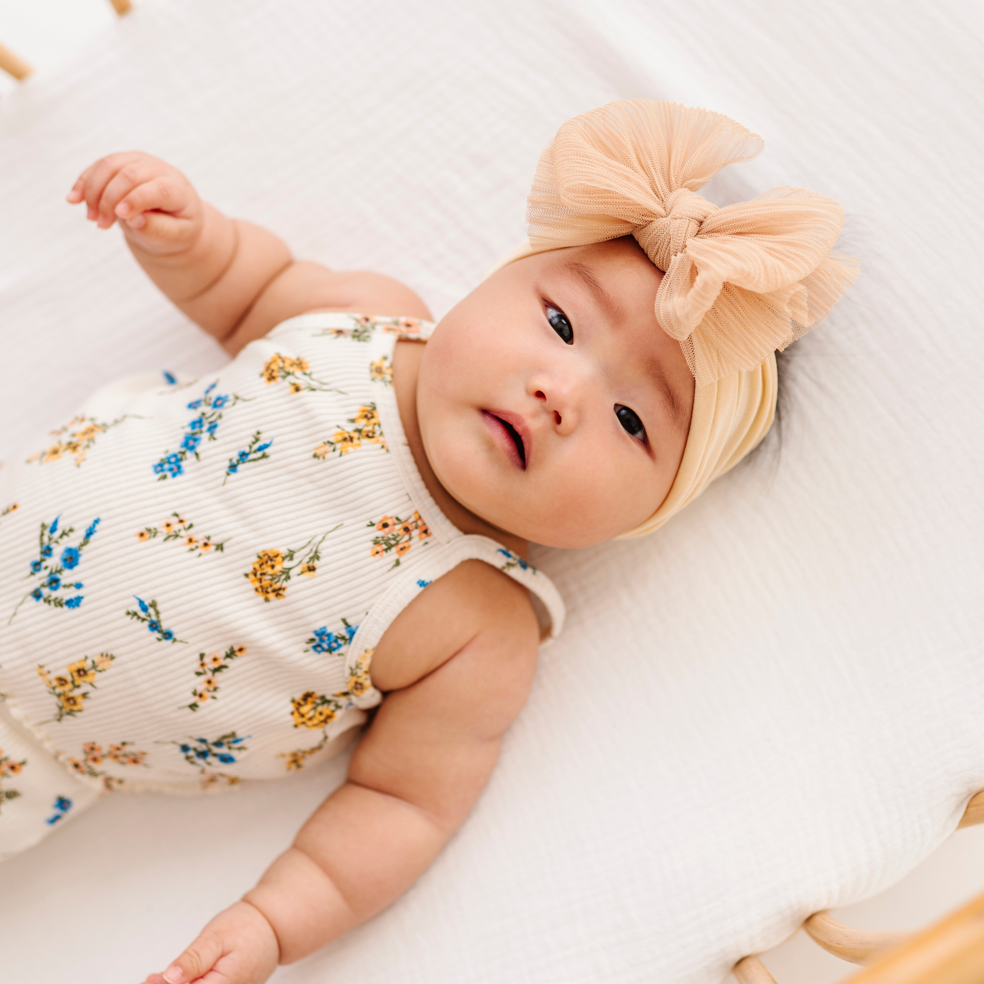 We love the classic knot in wheat. It’s petite and fits newborns well.